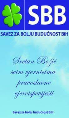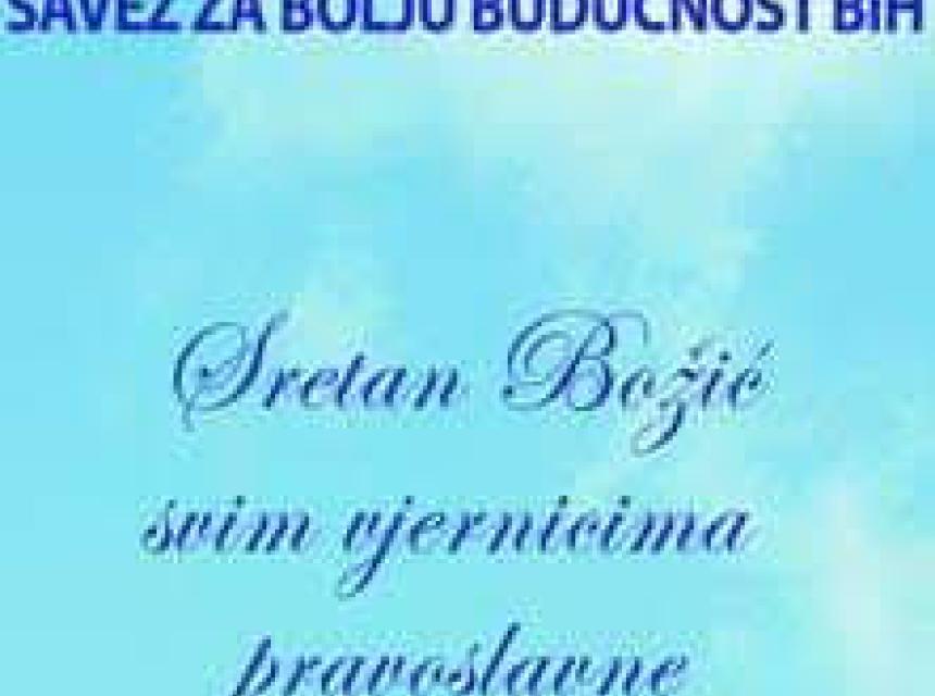 Kantonalni odbor Saveza za bolju budućnost BiH Unsko - sanskog kantona povodom pravoslavnog Božića, svim vjernicima pravoslavne vjere upućuje iskrene čestitke, sa željom da ga provedu u miru, sreći, zdravlju i blagostanju sa svojim najmilijim.