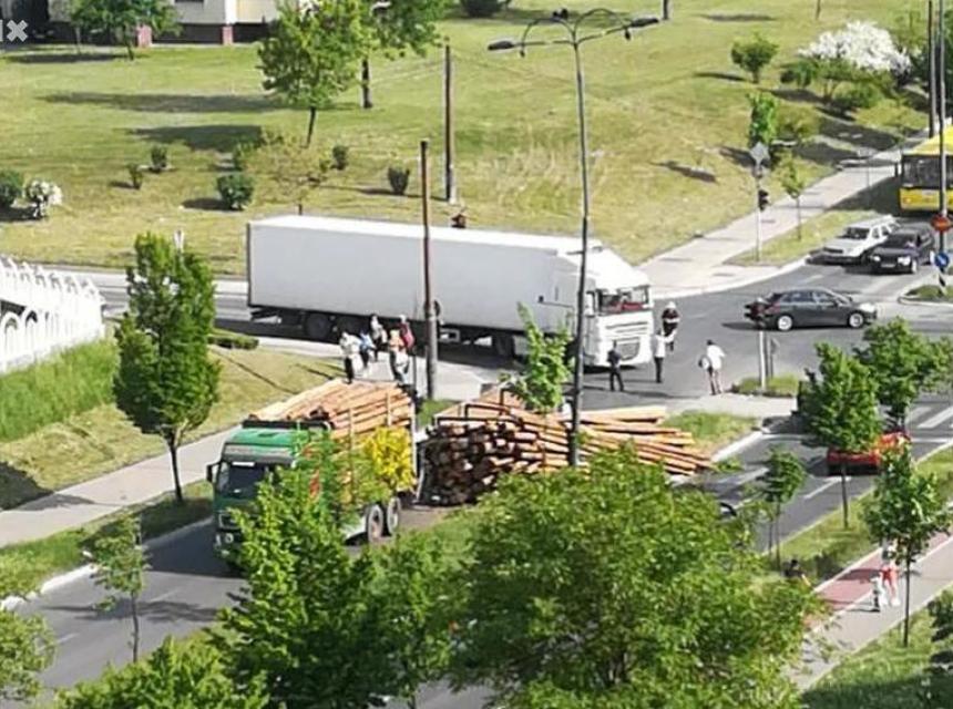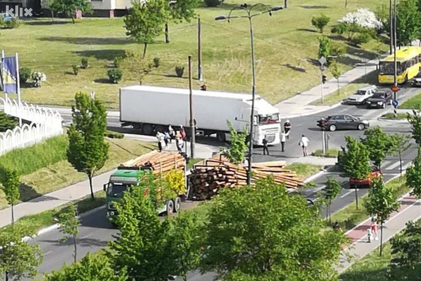 Kamion je prevozio debla koja su prilikom prevrtanja ispala iz prikolice onemogućivši normalno funkcionisanje saobraćaja u tom dijelu grada.