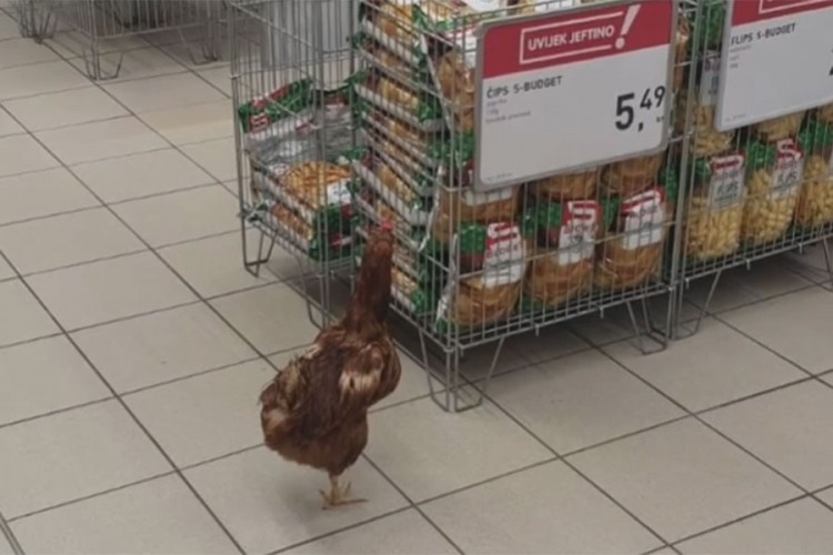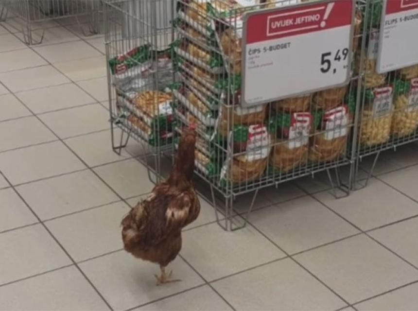 Na čuđenje svih prisutnih, kokoš se potpuno neprimjetno ušetala u trgovinu, a kada je odlučila prošetati između kasa, napravila je pravu pometnju među radnicima i kupcima , u Orahovici u Hrvatskoj.
