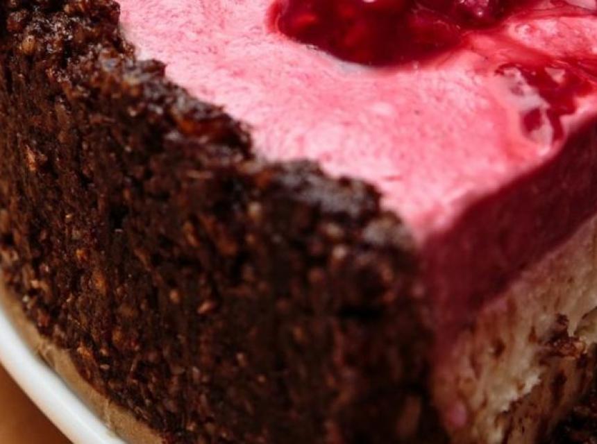 Pečeni kolač ostaviti da se ohladi, izvaditi na tacnu ili skinuti obruč kalupa, ukrasiti malinama i umućenom slatkom pavlakom.