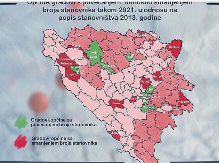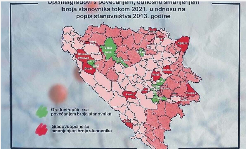 Izdvojili smo općine i gradove s najvećim smanjenjem broja stanovnika 2021. u odnosu na spomenuti popis u svakom od kantona, odnosno regija u Republici Srpskoj. Također smo izdvojili sve općine i gradove s povećanjem broja stanovnika u odnosu na popis iz 2013.