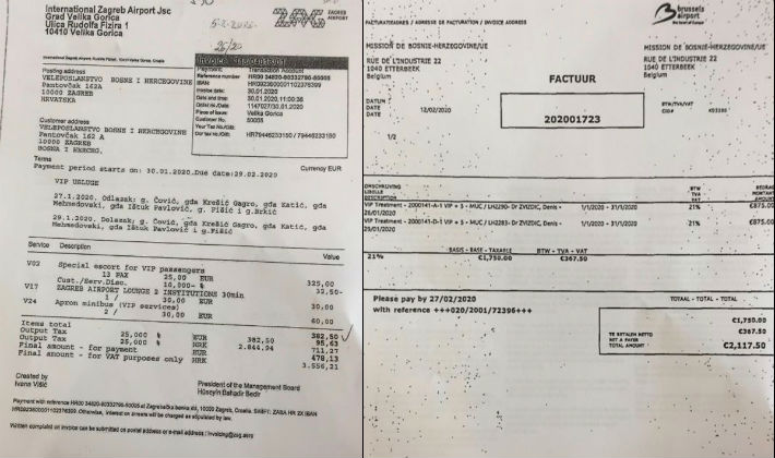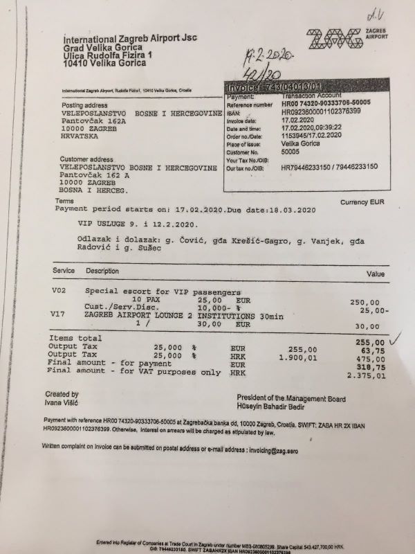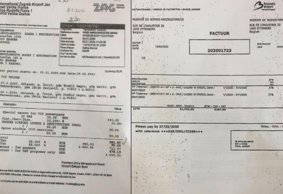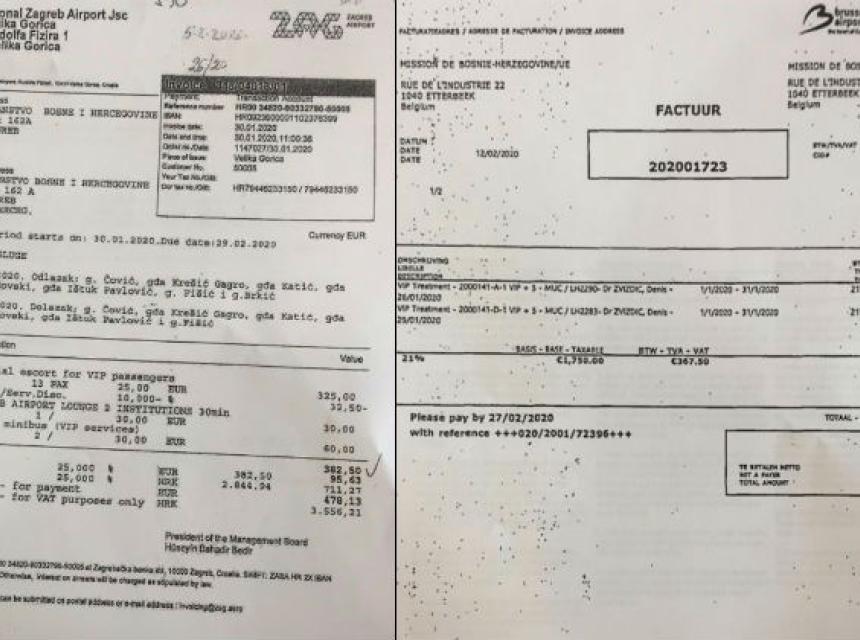 Prema računima i dopisima koje je predstavio Arnaut, a koji su nam dostupni možete vidjeti da je npr. Predsjedavajući doma naroda PSBiH Dragan Čović sa delegacijom koristio usluge VIP salona na zagrebačkom aerodromu i pri tome utrošeno cca. 790 EUR.