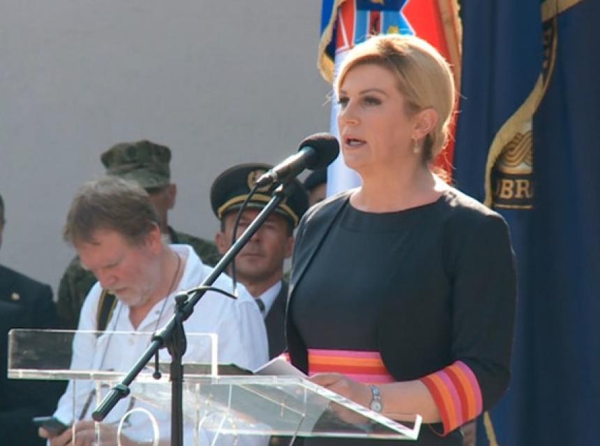 - Domovinski rat pokazao je karakter hrvatskog vojnika. Na tim odlikama odgajamo i nove naraštaje hrvatskog vojnika i danas se ističu u svojim rezultatima i misijama širom svijeta. Hrvatska će podupirati evropski put BiH, a to uključuje i potporu svim izbjeglim i proganim Hrvatima u BiH. Igramo iznad kategorije male zemlje, i to ne samo u nogometu - rekla je predsjednica.