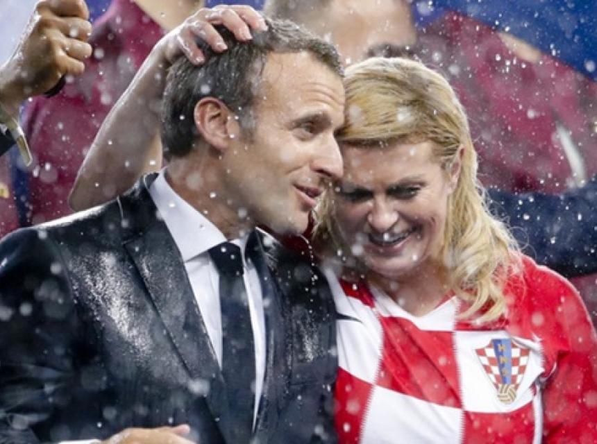 "Makron je čestitao nakon svakog hrvatskog gola. U svlačionicu smo otišli zajedno s Putinom, Makronom i Infantinom. Čestitali smo našima, fotografisali se sa njima, nažalost ovog puta nije bilo videa jer nije imao ko da nas snima. Išli smo i u francusku svlačionicu i ja sam im čestitala i bilo mi je divno kad su počeli da viču 'Croacie, Croacie'", ponosno kaže Kolinda.