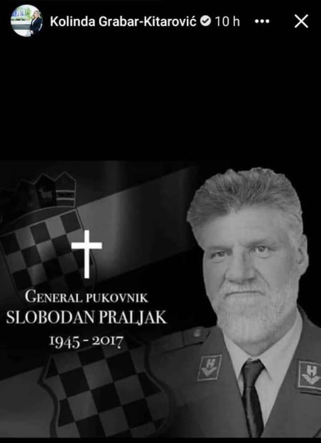 Na svojoj FB stranici je objavila post i odala počast na godišnjicu smrti haškog osuđenika Slobodana Praljka.