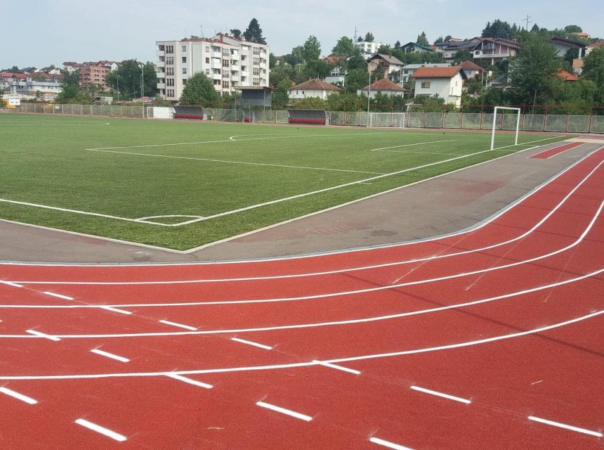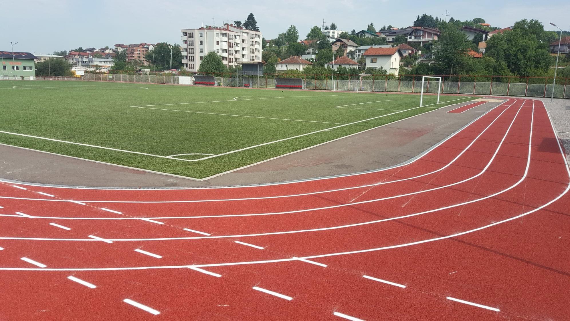 Konačno je završeno postavljanje atletske staze u Cazinu na gradskom stadionu.