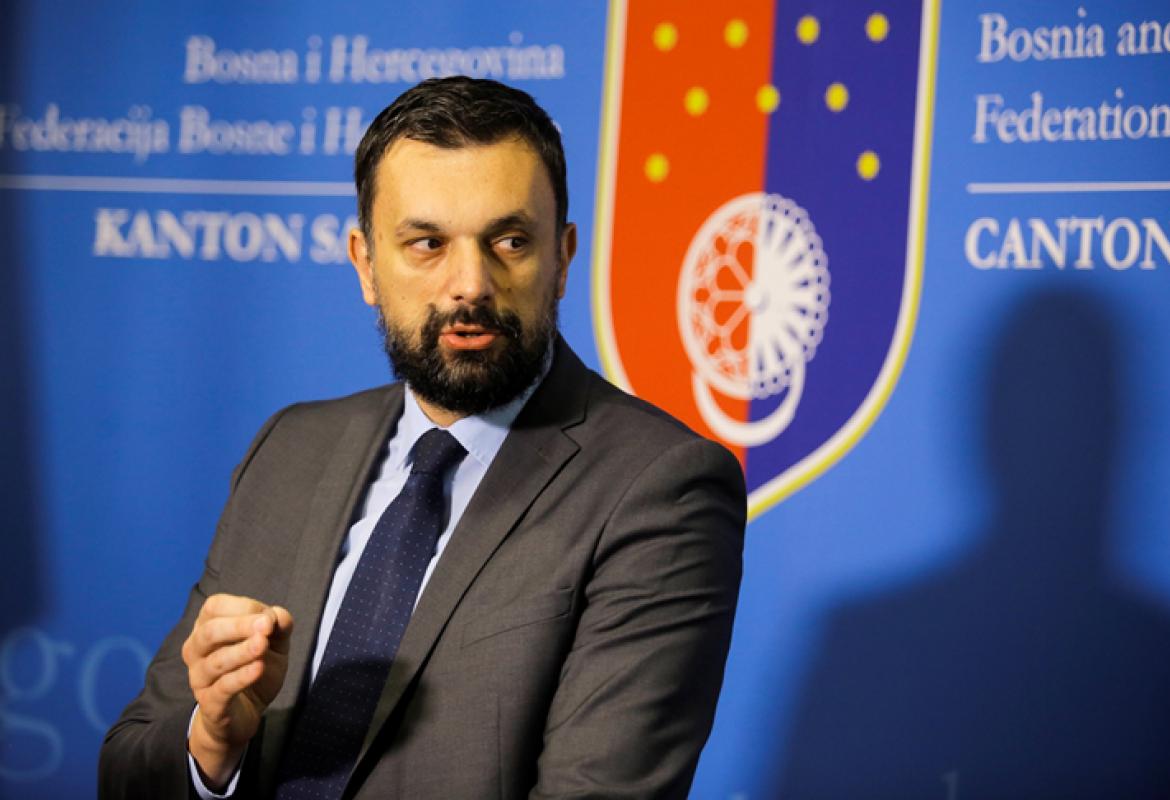 "U roku od osam dana podnijet ću ostavku. Vlada će nastaviti raditi normalno prema planu, a građani nisu trpjeli ni ranije pa neće ni sada zbog nove situacije. Građani nisu zaslužili slušati psovke u Skupštini i ne bi bilo uredu da pokažem sve poruke koje je razmjenjivao s političkim šefovima", rekao je Konaković nakon što je većina u Skupštini Kantona Sarajevo izglasala nepovjerenje njegovoj vladi.