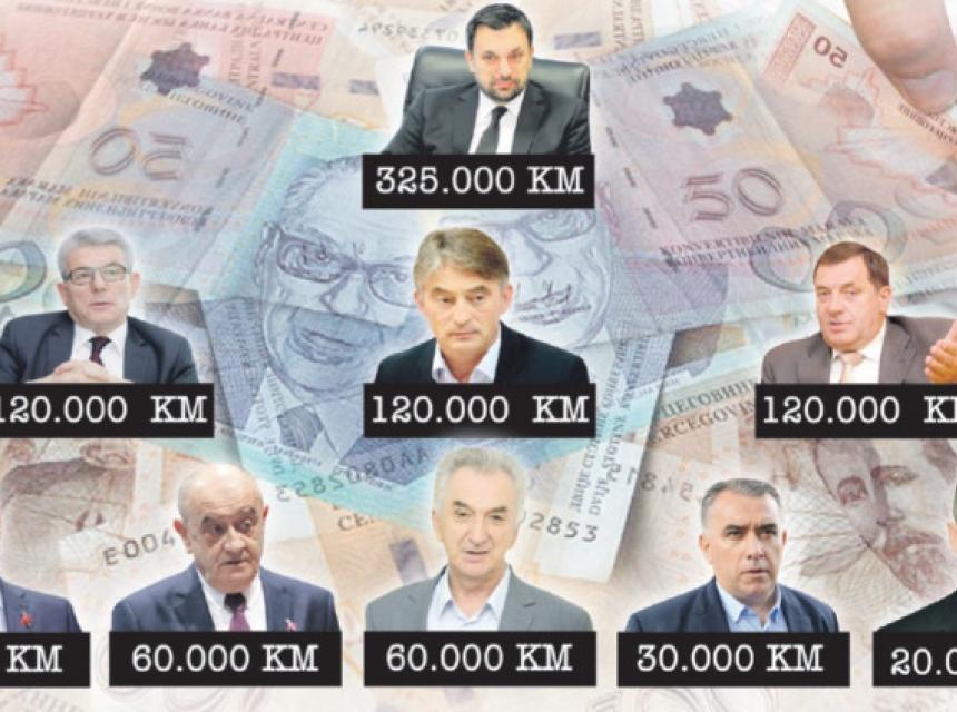 To znači da Željko Komšić, Šefik Džaferović i Milorad Dodik godišnje mogu potrošiti 360.000 KM, a sam Konaković, prema odluci Vlade KS, 325.000 maraka!