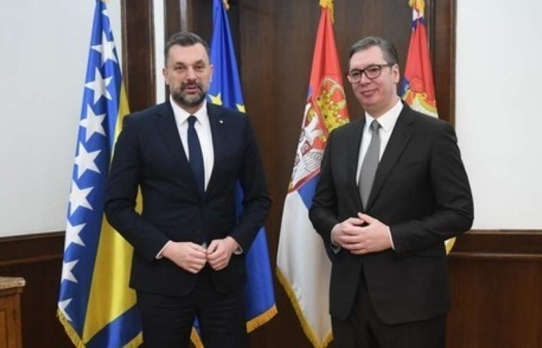 Predsjednik Srbije Aleksandar Vučić reagirao je na jučerašnju izjavu ministra vanjskih poslova Bosne i Hercegovine Elmedina Konakovića o jučerašnjem skupu "Srpska te zove" u Banjoj Luci.