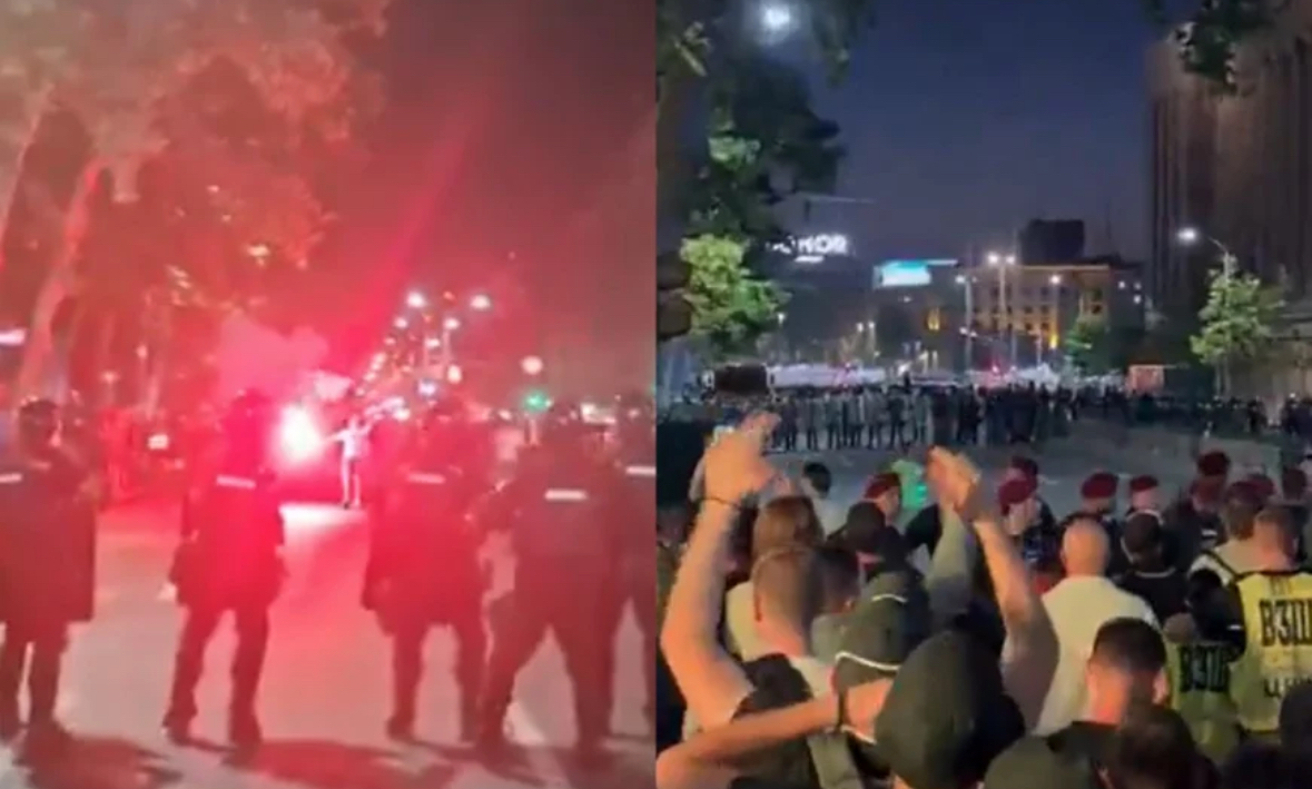 Prvi ozbiljniji incidenti registrovani su kad je kordon policije krenuo na okupljene građane. Većina njih nosi majice preko svojih lica.