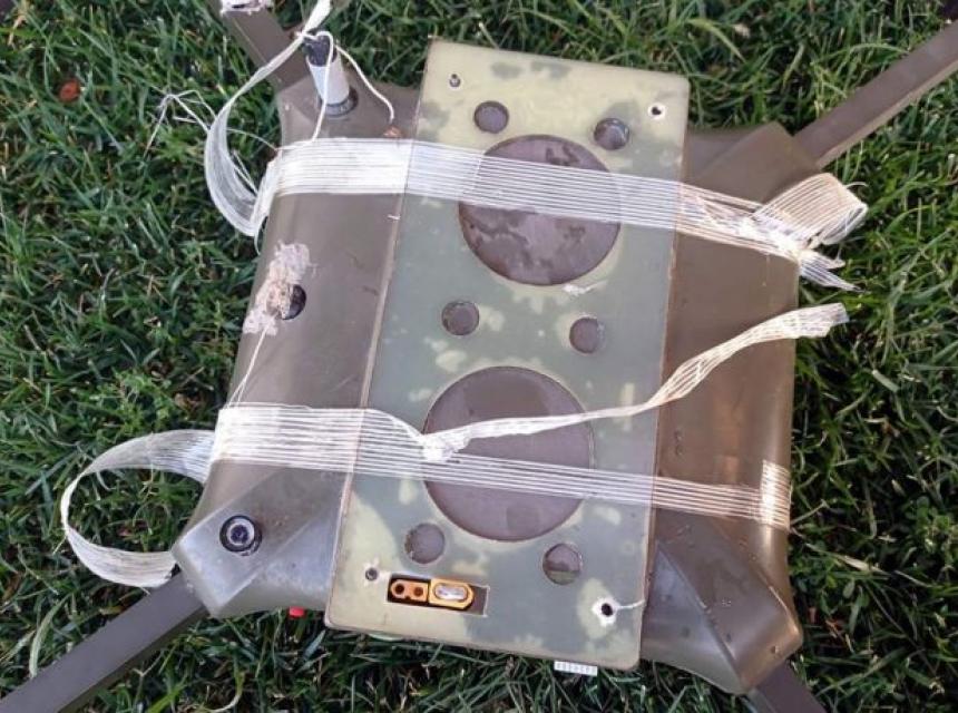 Na fotografijama koje je objavilo Ministarstvo mogu se vidjeti ručno izrađeni eksplozivi namontirani na dron.