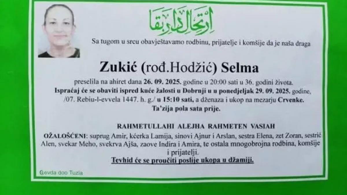 Tuga, nevjerica i šok zavladali su u Tuzlanskom kantonu i šire, nakon vijesti da je, u 36. godini života, nakon teške borbe s bolešću, na ahiret preselila Selma Zukić.