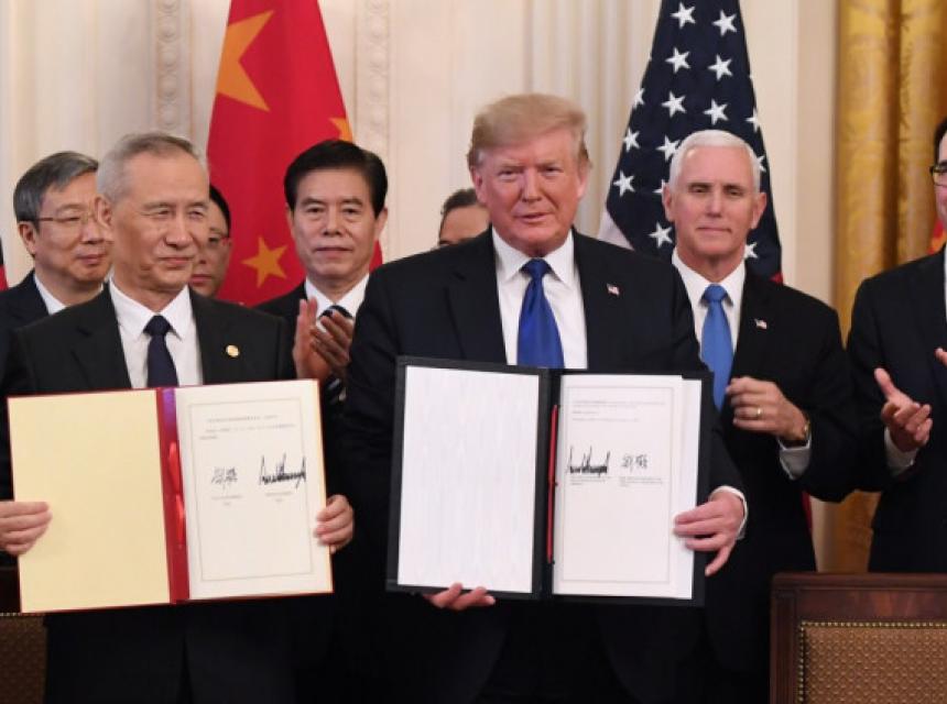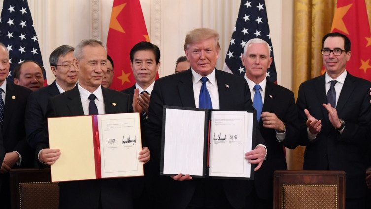 Američki predsjednik Donald Tramp (Trump) i potpredsjednik Kine Liu He, glavni trgovinski pregovarač zemlje, potpisali su danas u Vašingtonu trgovinski sporazum između dvije zemlje, čime je okončan dvogodišnji period zategnutih odnosa.