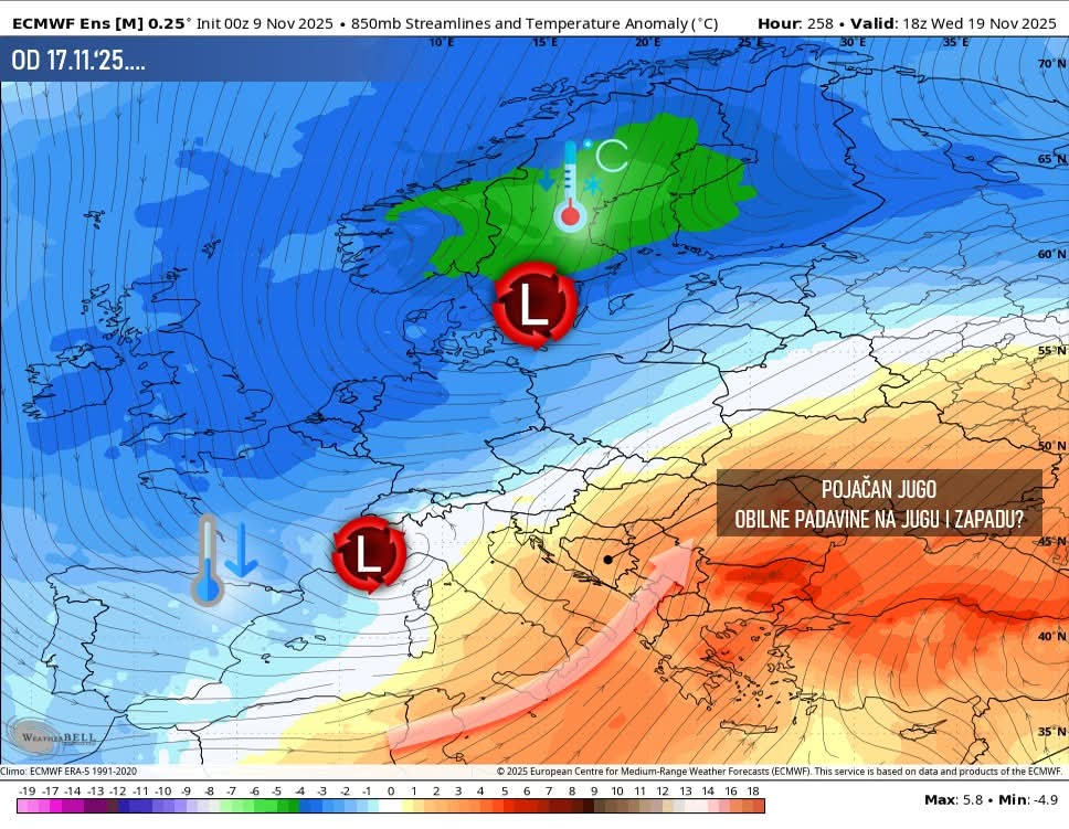Kako navode, u tom periodu bi trebalo doći do dominantne južine, uz pojačan jugo vjetar, dok se na jugu i zapadu zemlje očekuju obilnije padavine.