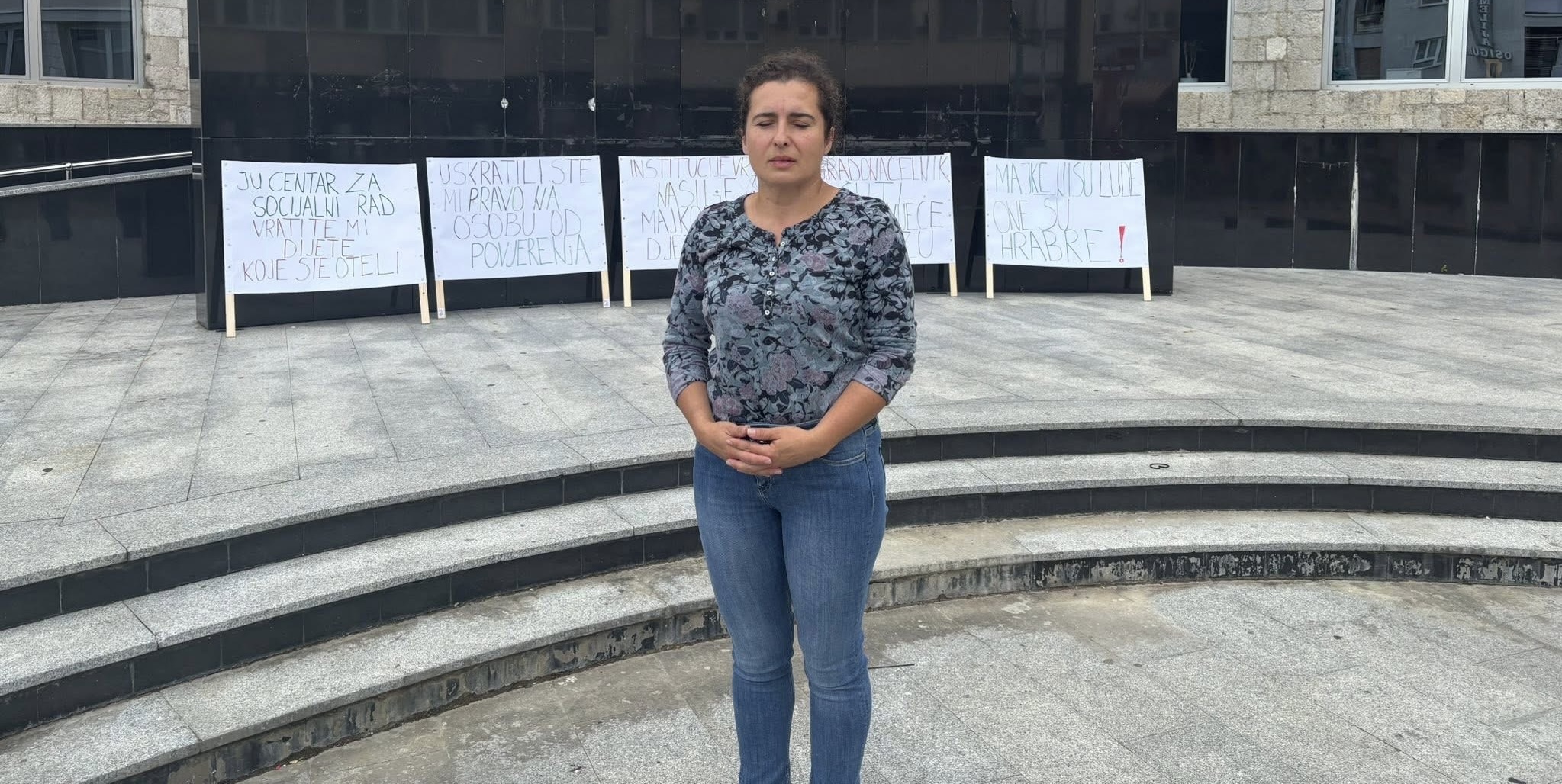 Na Gradskom trgu u Bihaću već treći dan traje mirno protestno stajanje majke koja od nadležnih institucija traži zaštitu svojih prava i prava svog djeteta. Svojim prisustvom i porukama, koje je ispisala na transparentima, ukazuje na propuste sistema i zahtijeva odgovorno djelovanje onih koji bi trebali štititi najranjivije.
