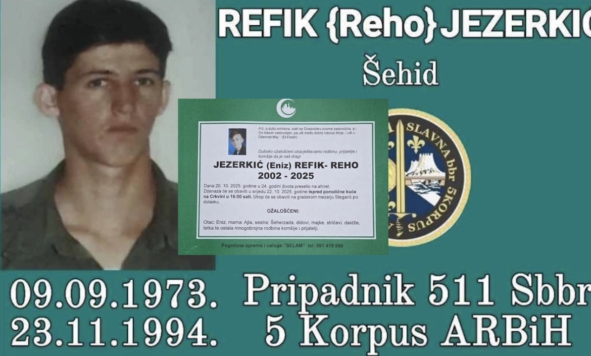 Njegovo ime nosilo je posebnu težinu – ime po stricu, šehidu Refiku Rehi Jezerkiću, heroju Armije Republike Bosne i Hercegovine, pripadniku 511. Slavne brdske brigade, koji je poginuo 1994. godine na Padežu kod Bosanske Krupe i posthumno odlikovan najvišim ratnim priznanjem “Zlatni ljiljan”.