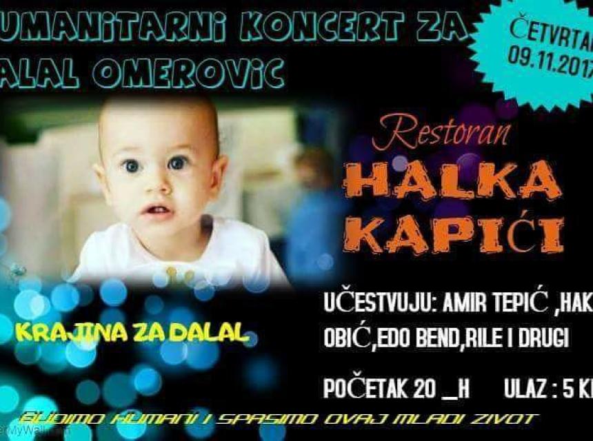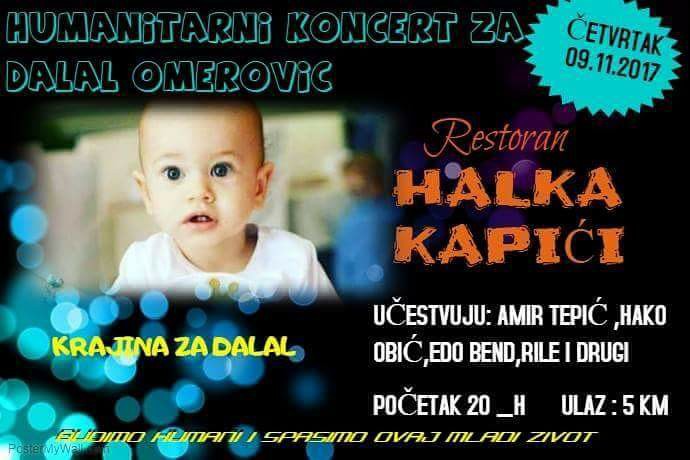 U ciklusu velikih humanitarnih akcija za Dalal Omerović, malenu Bišćanku koja se bori s teškom bolešću, u restoranu Halka Kapići održat će se humanitarni koncert čiji će prilog ići za liječenje malene djevojčice.