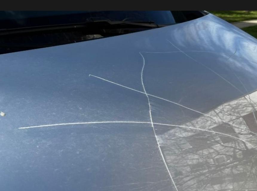 Fotografija haube automobila svjedoči o nemilosrdnosti napada – ogrebotine su duboke, haotične i ostavljaju dojam poruke, a ne pukog vandalizma.