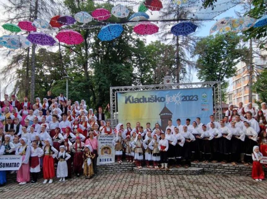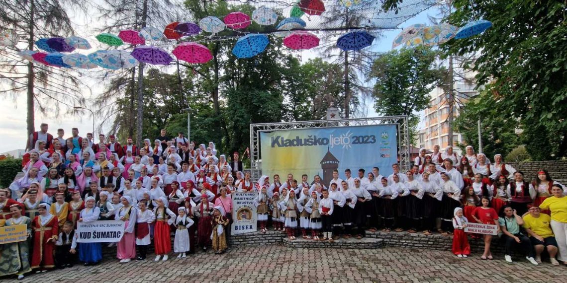 Nakon dobrog jela, posjetitelji su ovu 11. noć „Kladuškog ljeta 2023“ uživali u odličnom kultuno-umjetničkom programu, smotri folklora.