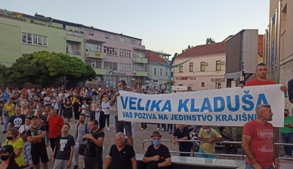 ''Velika Kladuša vas poziva na jedinstvo Krajišnika'', pisalo je na glavnom transparentu sa ovih protesta.