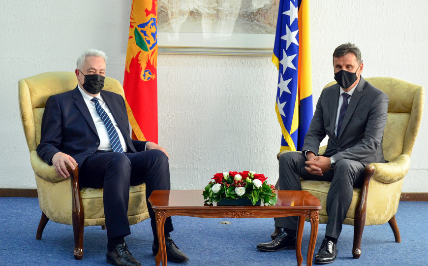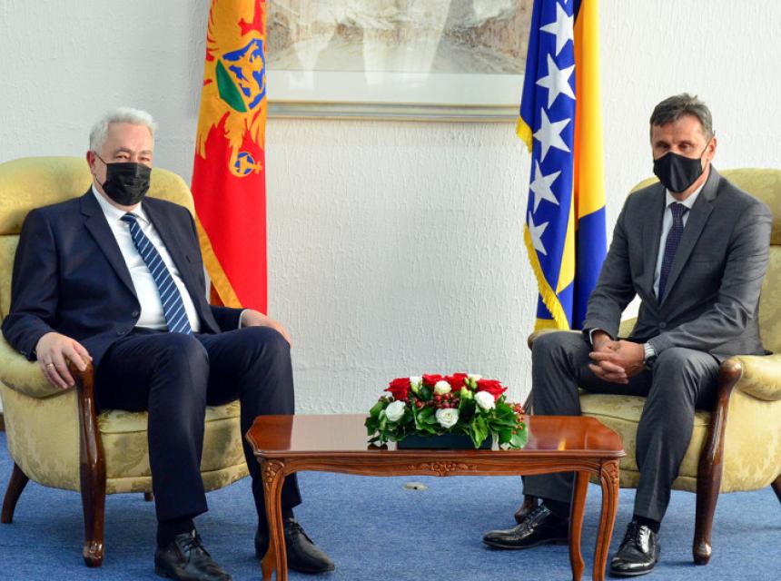 Premijer Federacije Bosne i Hercegovine Fadil Novalić primio je danas u sjedištu Vlade Federacije BiH u Sarajevu premijera Crne Gore Zdravka Krivokapića, koji boravi u službenoj posjeti Bosni i Hercegovini.