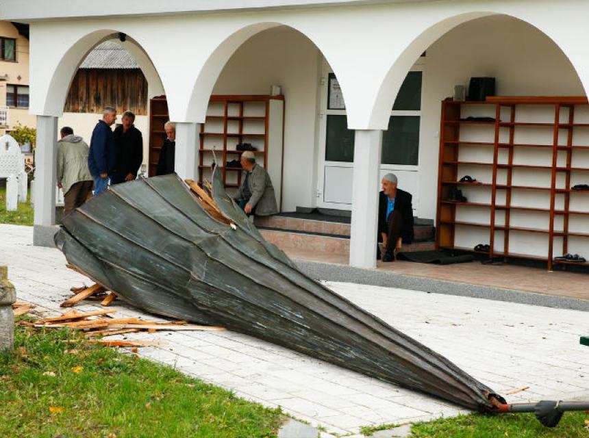 Usljed nevremena i olujnog vjetra, sinoć je u mjestu Grivići kod Hadžića, pred sami ulaz u džamiju pao krov munare, a kako mještani navode desilo se to svega 10-ak minuta pred dolazak vjernika na večernju molitvu jacija-namaz, javlja Anadolu Agency (AA).