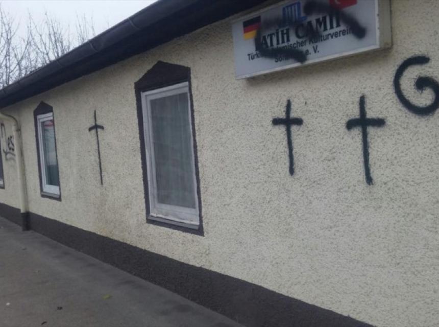 Vandal ili više njih na zidovima džamije, koja djeluje pod okriljem Turske islamske zajednice Diyanet (DITIB), sprejom su nacrtali krst i uvredljive poruke.