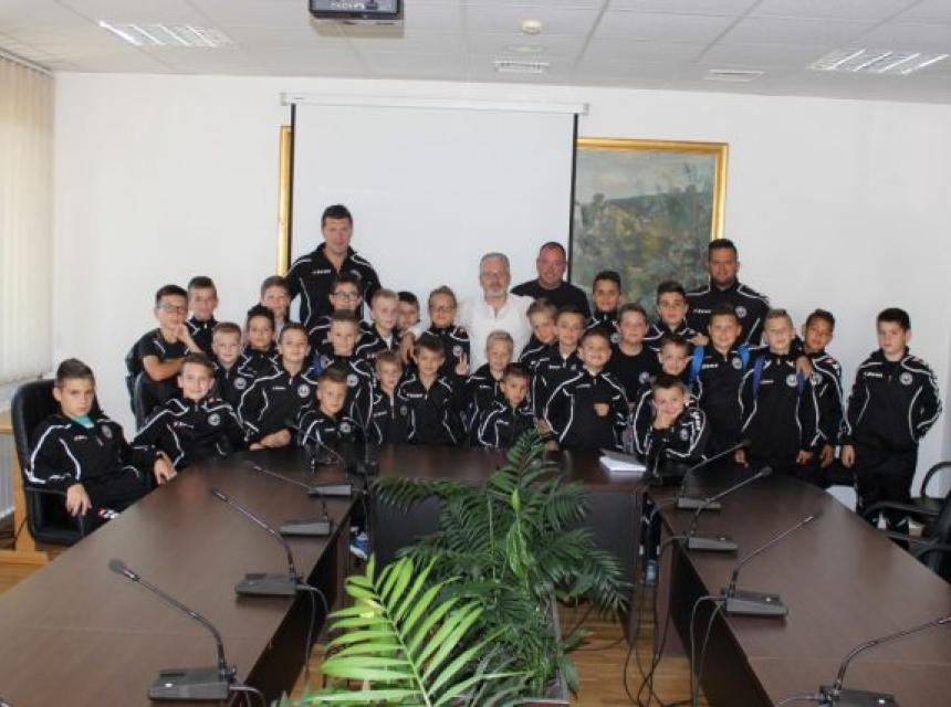 Članovi Nogometne škole „Feniks“, mladi i perpektivni igrači iz Bosanske Krupe, zajedno sa svojim predsjednikom i trenerima, posjetili su jučer Općinu i načelnika Armina Halitovića.