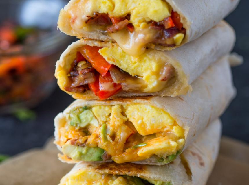 - Narežite papriku na male kockice. Tortilje zagrijte na tavici ili u pećnici, nadjenite ih jajima, a zatim i kukuruzom i paprikom.