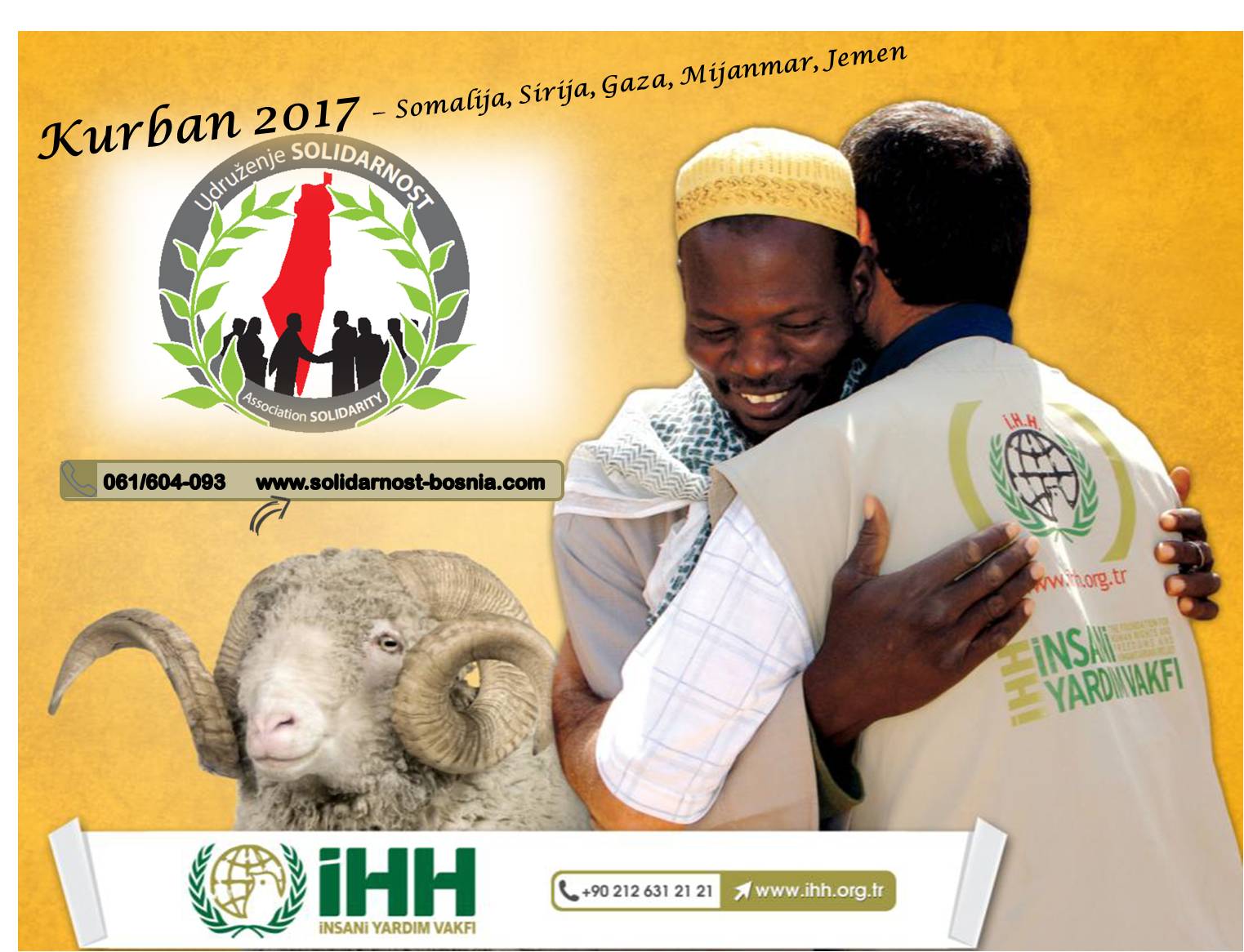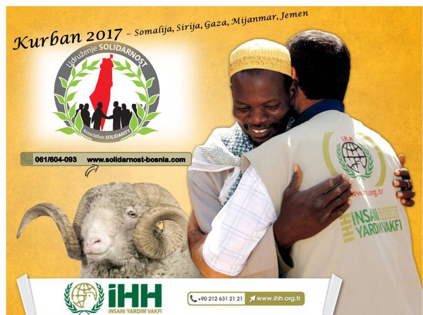 Sedmu godinu za redom, udruženje Solidarnost, u suradnji sa partnerskom IHH organizacijom, pruža vam priliku da svoj kurban darujete onima u najvećoj potrebi. Porodicama ratom i glađu zahvaćenih područja.