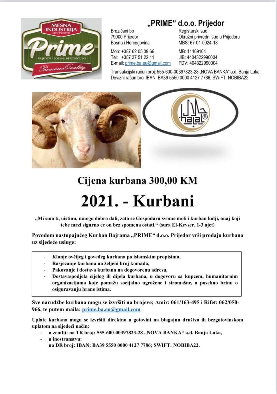 I ove godine kod Prime doo Prijedor možete osigurati kurban i izvršiti svoju svetu dužnost.