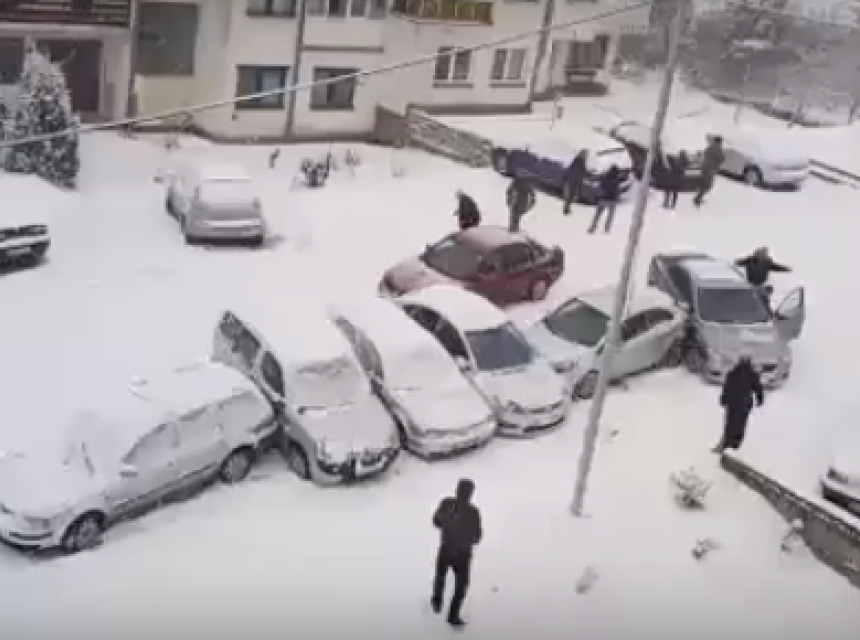 Snijeg koji od jutros pada u većem dijelu Bosne i Hercegovine uzrokovao je teškoće u saobraćaju širom zemlje, u Istočnom Sarajevu dogodila se nesvakidašnja saobraćajna nesreća u kojoj je jedan automobil pomjerio sedam drugih.