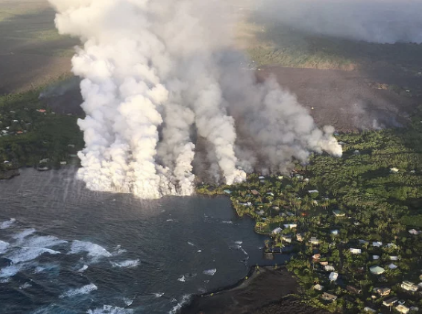 Eksplozija je u zrak izbacila kamenje koje je probilo krov turističkog čamca, jednom puitniku je slomljena noga, dok su ostali zadobili opekotine. Lava potiče iz havajskog otoka Kilauea, koji je eruptirao u maju otkad izbacuje gasove i rastopljeno kamenje.