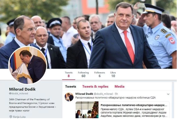 Naime, već vrijeme na Twitteru se može vidjeti profil s autentičnom biografijom Dodika, no iz SNSD-a su napomenuli da to nije profil njihovog predsjednika, kako piše Klix.ba.