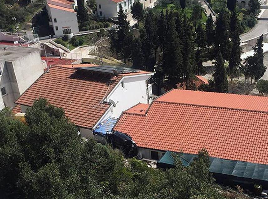 U utorak oko 13 sati policija je dobila prijavu da se dogodila saobraćajna nesreća u kojoj je došlo do slijetanja vozila VW Golf V s kolnika iznad ulice Ruđera Boškovića i pada vozila na krov kuće.