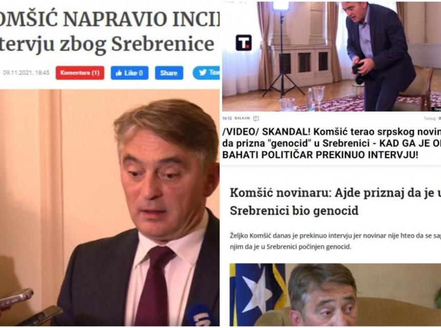 Portal Novosti je pak Komšića opisao kao "bijesnog" političara, dok je Tanjug otišao korak dalje u lažima napisavši da je predsjedavajući Predsjedništva BiH "tjerao" novinara da prizna da se desio genocid u Srebrenici, što naravno nije istina.