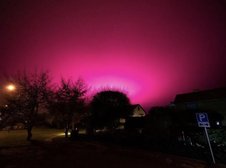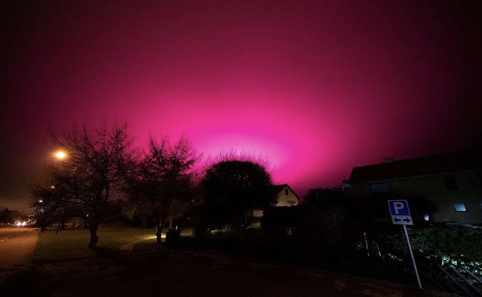 Noćno nebo izvan Trelleborga - gradića na južnoj obali Švedske - počelo je blistati zapanjujuće ljubičasto kako je noć stizala, što je izazvalo uzbunu kod lokalnog stanovništva.