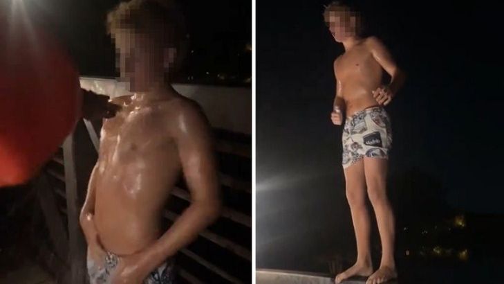 Bizarna i suluda scena snimljena je kamerom, a jasno je da se oko momka nalaze ljudi (uključujući djecu) koji ga bodre.