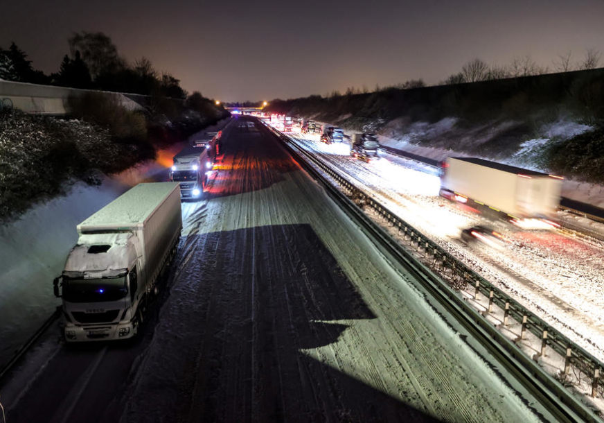 Nevrijeme sa velikim snježnim padavinama izazvalo je haos na putevima kroz Njemačku, a na autoputu A2 brojni vozači proveli su čitavu noć u svojim vozilima.