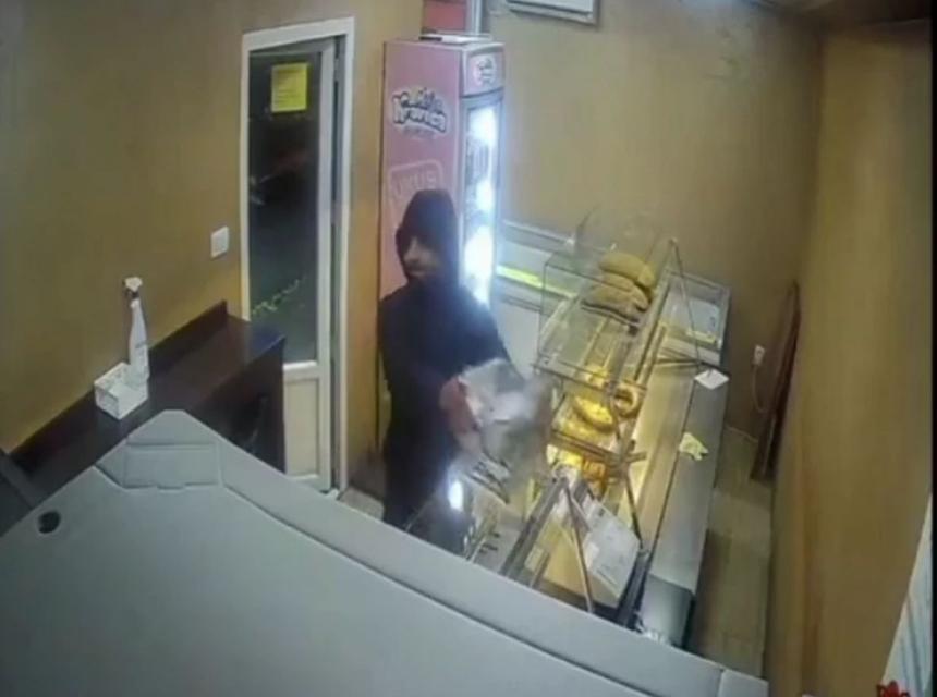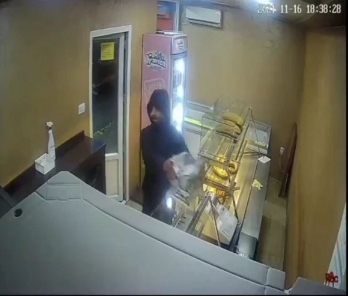 Na snimku sa nadzorne kamere vidi se da muškarac vreba ispred vrata i čeka momenat u kom će radnica da okrene leđa, a potom ulazi i uzima kutiju, nesvjestan da u pekari postoji video nadzor.