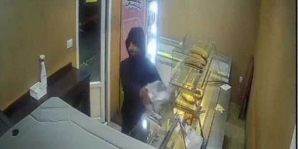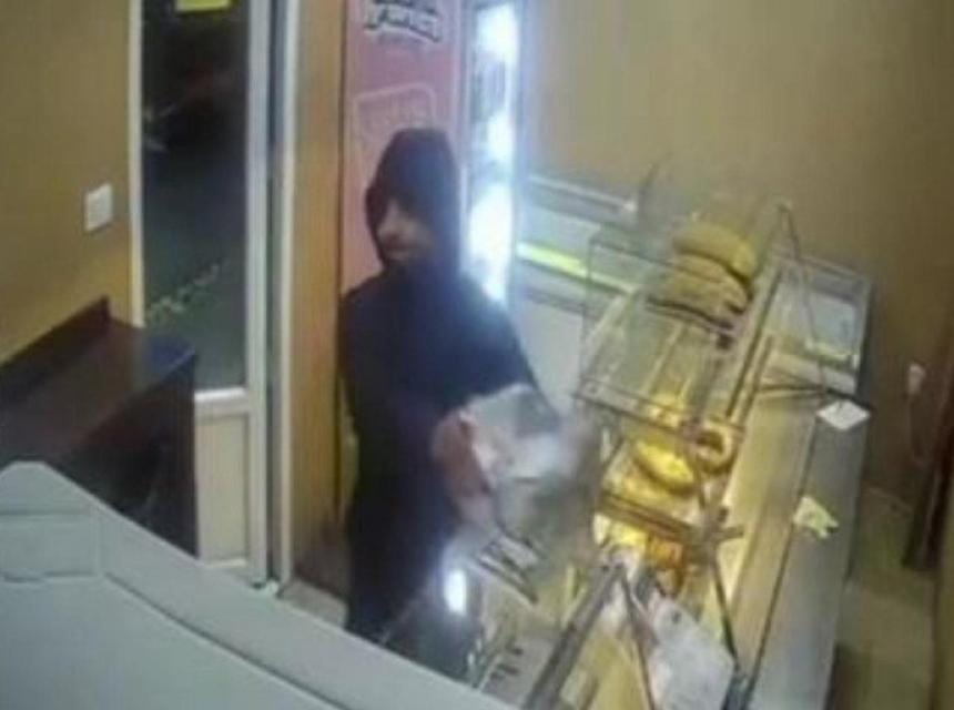 Na snimku sa nadzorne kamere vidi se da muškarac vreba ispred vrata i čeka momenat u kom će radnica da okrene leđa, a potom ulazi i uzima kutiju, nesvjestan da u pekari postoji video nadzor.