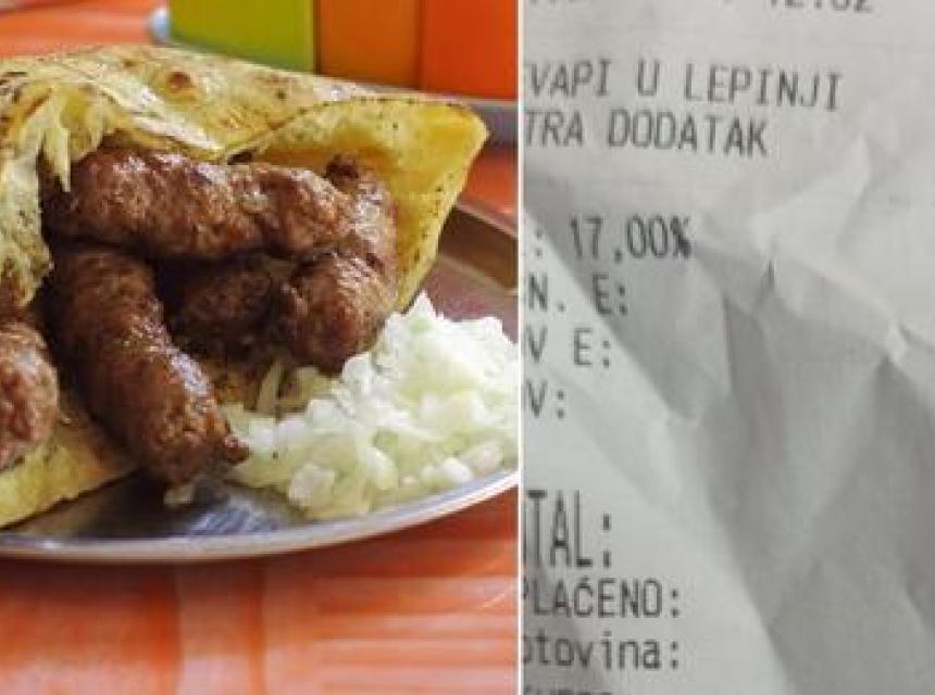 Na društvenim mrežama objavljen je račun iz jednog cazinskog restorana na kojem cijena porcije ćevapa (10 ćevapa u lepinji) iznosi 9 KM, dok je “extra dodatak”, kako je navedeno na računu, a radi se o sjeckanom luku, dodatnih 1 KM.