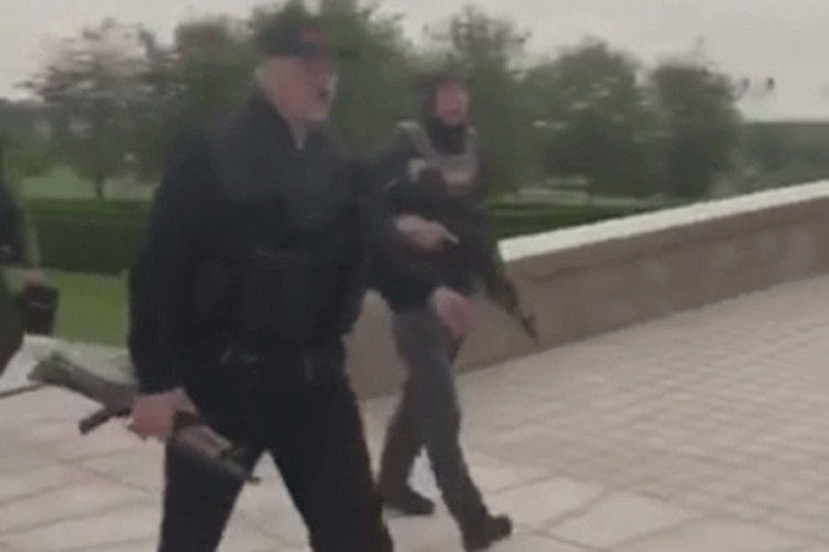 Objavljen je i snimak na kojem se vidi kako Lukašenko izlazi iz helikoptera sa automatom u rukama.