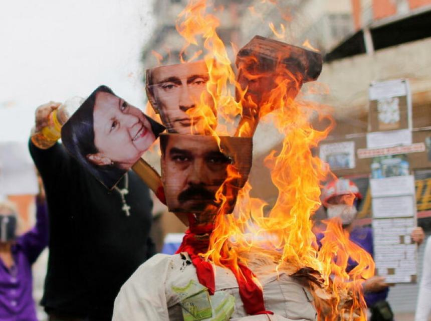 Velika lutka sa starom odjećom i četiri glave, među kojima su lica predsjednika Venecuele i Rusije, Nikolasa Madura i Vladimira Putina, spaljena je jučer u Karakasu na takozvanoj Judinoj lomači koja je dio tradicije za vrijeme Uskrsa.