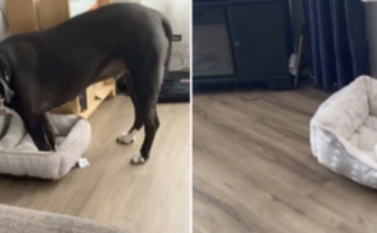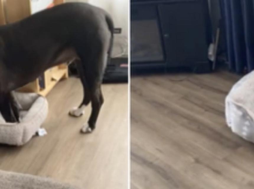 Veliki pas s tužnim pogledom na licu stao je na krevet svoje cimerice i pokušao leći na njega. Jasno, nije uspio u svom naumu, jer je tri puta veći od jastuka, ali snimka je mnoge nasmijala do suza.