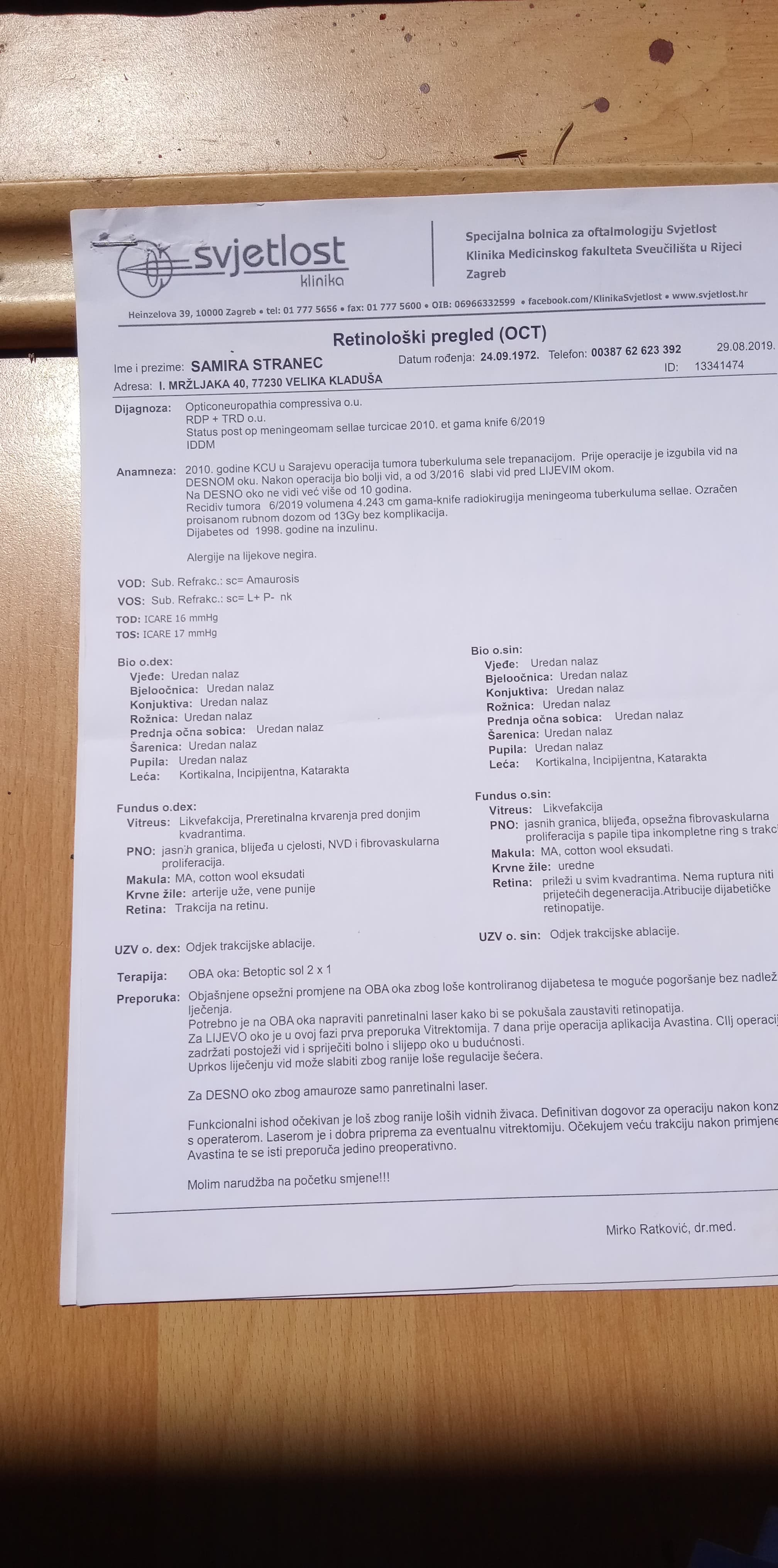 Svu medicinsku dokumentaciju posjeduje i moze se dobit na uvid kao i posjetit na Adresu