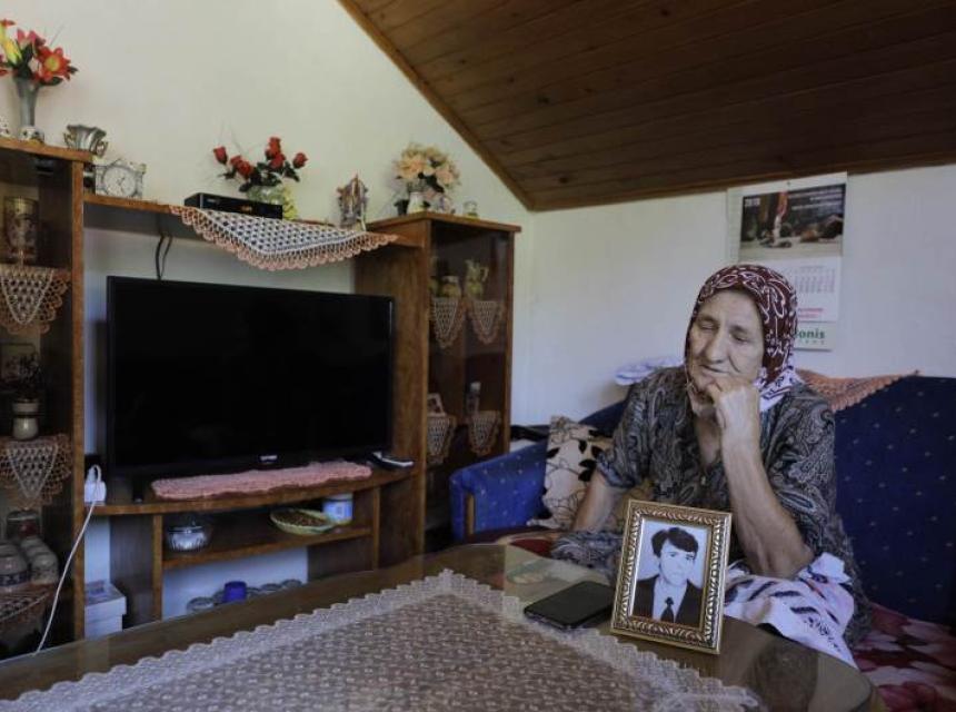 "Došla sam s dvije torbe, toliko sam mogla ponijeti stvari. Ostala kuća i sve. Muž je umro prije rata. Sinovi odrasli, završili školu. Ostala sam željna svoje djece. Nisu ni mrava zgazili. Jedan je imao 20, a drugi 22 godine. Slušali su me", ispričala je majka Fata dok kraj nje stoji fotografija jednog od sinova.