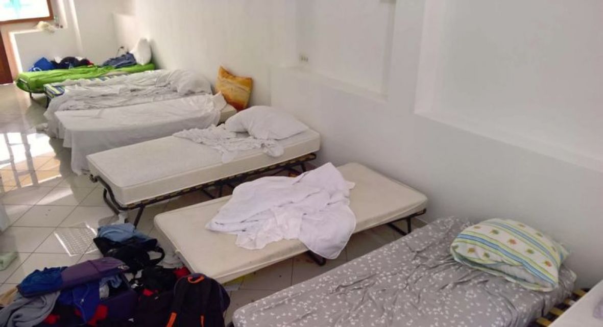 Devet “poljskih” ležajeva nagurano je u 70 kvadrata bivšeg butika “Moda”. To znači da se s ulice izravno ulazi u spavaonicu, a sanitarni čvor prilagođen je dnevnom radu trgovkinja: jedan umivaonik i jedna wc školjka. Bez klime, kupaonice, zastora, ormara...
