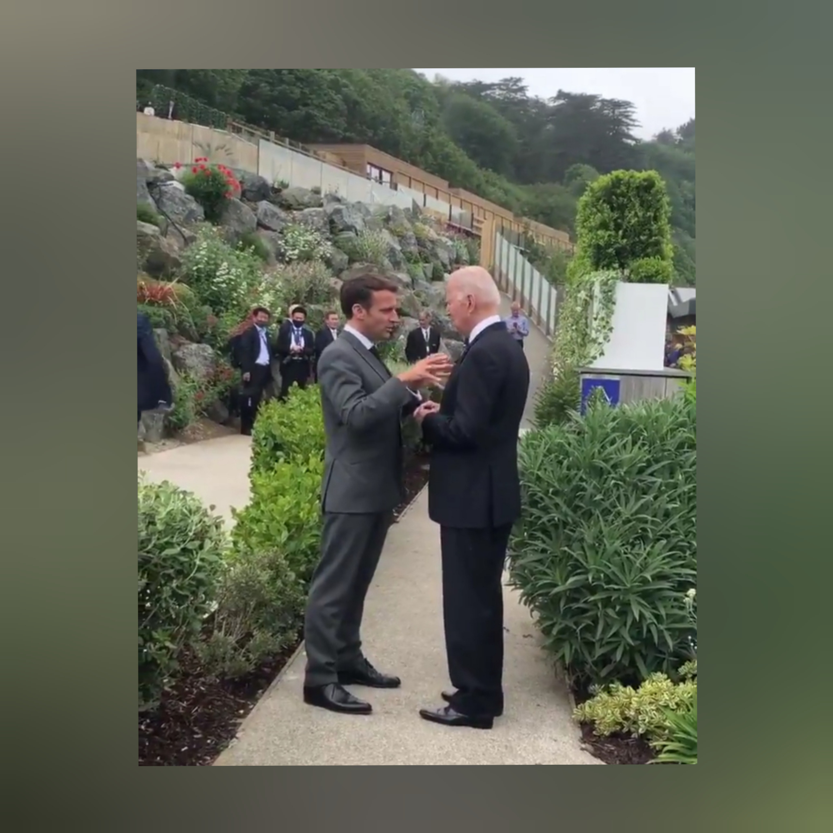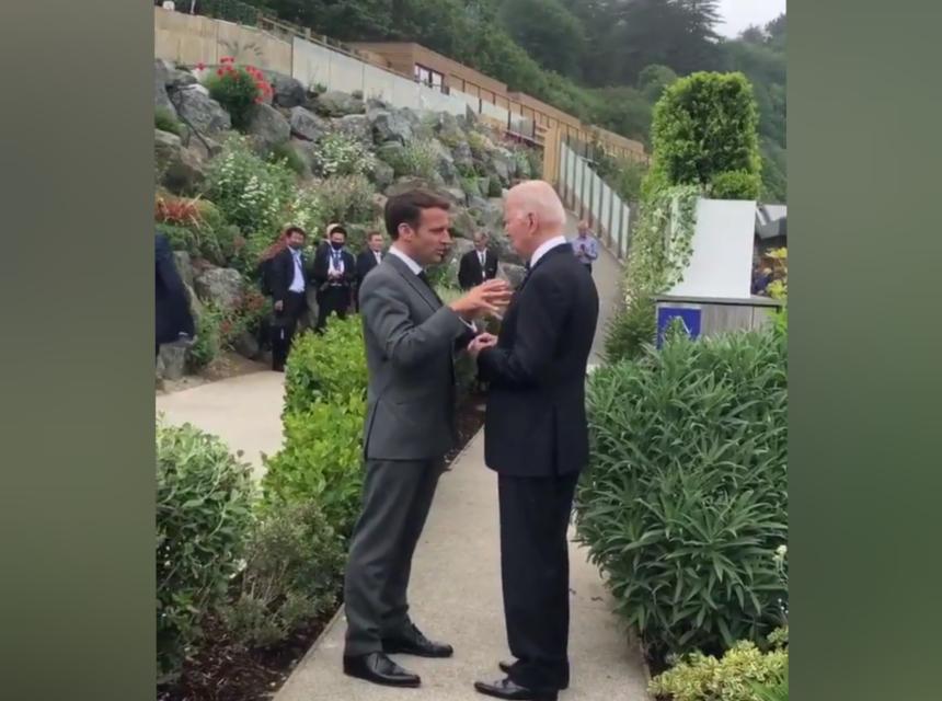 Na sastanku s Makronom, Bajden je upitan da li se Amerika vratila, na što se on okrenuo prema francuskom predsjedniku i rekao da bi on trebao odgovoriti na to pitanje.