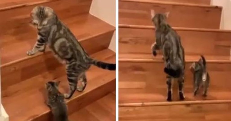 MAMA mačka pomogla je mačiću popeti se stepenicama u preslatkom videu koji je objavljen na Twitteru, a nije dugo trebalo da snimka postane hit.